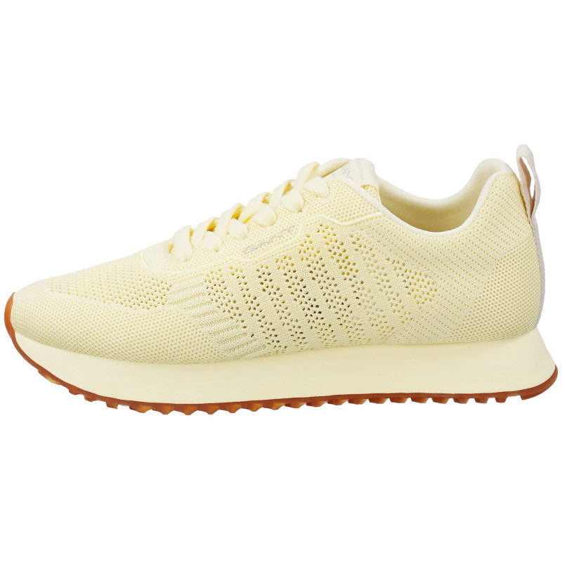Zažite pocit absolútnej slobody s týmito inovatívnymi teniskami od svetoznámej značky Gant. Model v jemnom vanilkovom (krémovom) odtieni je vyrobený z modernej syntetickej pleteniny, ktorá vďaka prepracovanej štruktúre sieťoviny zabezpečuje dokonalú cirkuláciu vzduchu a maximálnu priedušnosť aj počas najteplejších dní. Bezšvový dizajn zvršku sa prirodzene prispôsobí tvaru vášho chodidla ako druhá koža. Tenisky sú doplnené o ľahkú, vyvýšenú medzipodrážku v tóne topánky a kontrastnú hnedú gumovú podrážku s jemným dezénom, ktorá tlmí každý váš dopad. Decentné logo na boku a pútko na päte podčiarkujú funkčnosť a minimalistickú estetiku tohto prémiového modelu.