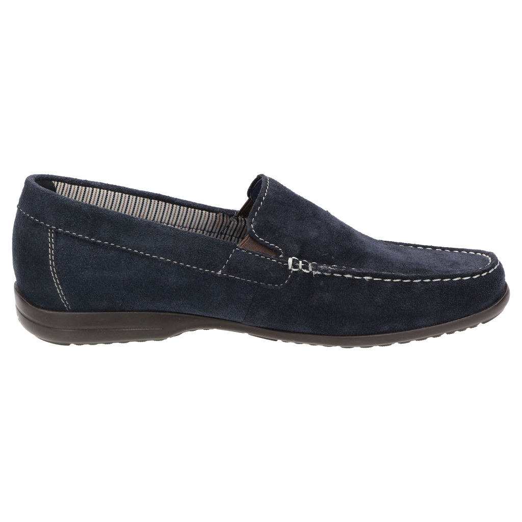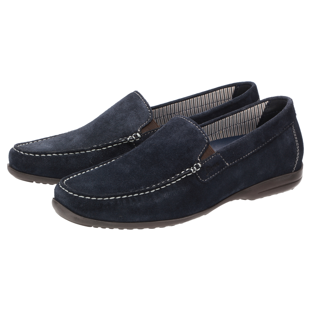 Pánske mokasíny v štýle mokasín vyrobené z jemnej telacej semišovej kože v tvare šírky H. Mäkká, polstrovaná, kožou potiahnutá odnímateľná stielka a podšitá letnou látkou. Ľahká gumová podrážka robí z tejto topánky ideálneho spoločníka na nosenie počas celého dňa. Kvalitný telací semiš pre tento model pochádza z garbiarne Oehler v Marbachu, takže je vyrobený v Nemecku a spĺňa najvyššie štandardy kvality a spoločenských štandardov na svete.